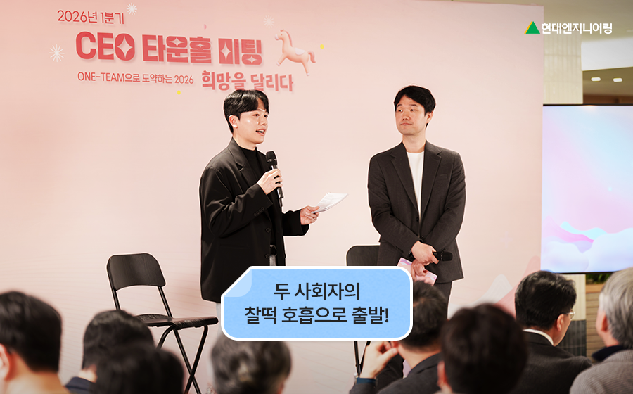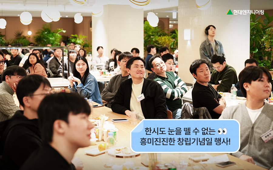 👦🏻조성민 책임: 그러니까요. 앞으로도 ‘어쩔 수 없이’ 라기 보다는 ‘나부터 참여해야지!’라는 마음이 자연스럽게 스며드는 문화를 만들고 싶습니다. 우리 현대엔지니어링의 조직문화가 더 건강하게 뿌리내릴 수 있도록, 비전디자인팀이 쉼 없이 고민하고 노력하겠습니다!