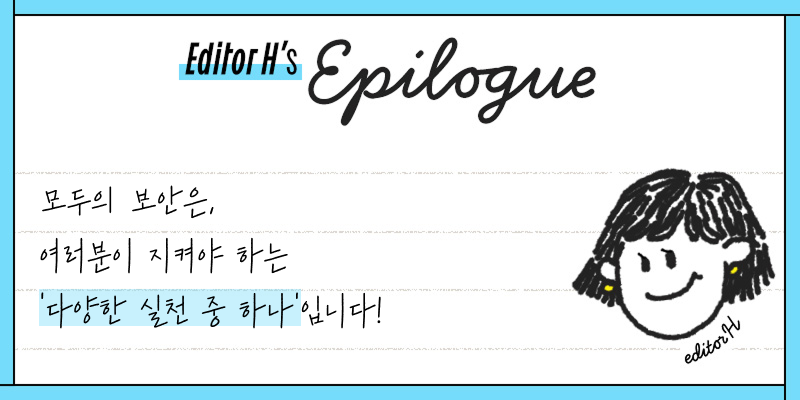 앞으로도 일상의 한 부분처럼, 자연스럽게 늘 보안 수칙을 챙겨보겠습니다~!