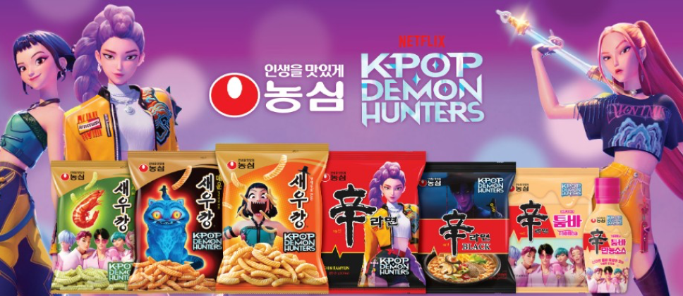 농심에서는 넷플릭스 애니메이션 <케데헌>과 글로벌 협업을 통해 한국 팬덤을 한층 늘리고 있어요. 농심에서 핫한 아이템으로 밀고 있는 신라면은 ‘Spicy Happiness In Noodles, 매콤한 행복은 라면에서!’라는 슬로건 으로 라면의 매력을 전하고 있습니다!