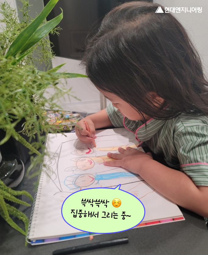 올해 건축사업본부 임직원 자녀 사생대회는 2가지 테마로 진행되었어요. 테마1은 “내가 그린 안전한 현장! 우리 가족 행복 지킴이!” 테마2는 “미래를 만드는 HEC! 꿈이 있는 우리의 삶!”인데요~