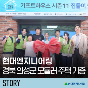 현대엔지니어링(대표이사 주우정) 경상북도 의성군 주거 취약 가정에 모듈러 주택을 기증하고, ‘기프트하우스 시즌11’ 집들이 행사를 진행했다고 30일(화) 밝혔다.