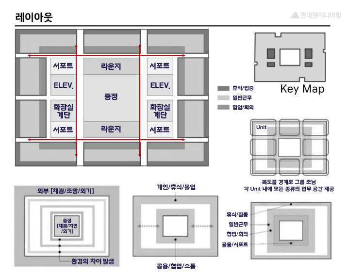 소통·몰입·유연성·편안함이 공존하는 미래형 오피스, 현대엔지니어링이 추구하는 지속 가능한 창의 환경의 새로운 모델이라고 볼 수 있습니다. 이 공간을 꼼꼼히 둘러보겠습니다.