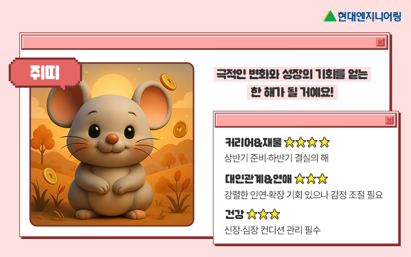 대인관계&연애: 강렬한 인연을 만날 수 있고 기존 관계에서 갈등이 생길 수도 있어요. 감정보다 이성적으로 대응하는 게 중요하답니다. 쥐띠의 재치와 융통성으로 인맥이 확장될 기회를 얻을 수 있어요. 🥹