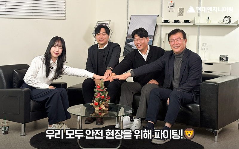 김규설 이사: 다들 프로 방송인 같던데요? ㅎㅎ 현대엔지니어링에서 정말 많은 준비를 해주셨는데, 제가 워낙 긴장을 많이 해서... 촬영이 조금 딱딱하게 나온 건 아닌지 아쉬움이 남아요. 현장에서 긴장이 어떻게 사고로 이어질 수 있는지, 또 근로자분들이 편안하고 안전한 상태에서 일할 수 있도록 지원하는 게 얼마나 중요한지 다시 생각해보는 계기도 됐어요. 함께 출연한 두 분은 첫인상부터 너무 좋았고, 촬영하면서 긍정적인 에너지를 많이 주셔서 정말 감사했어요~😉